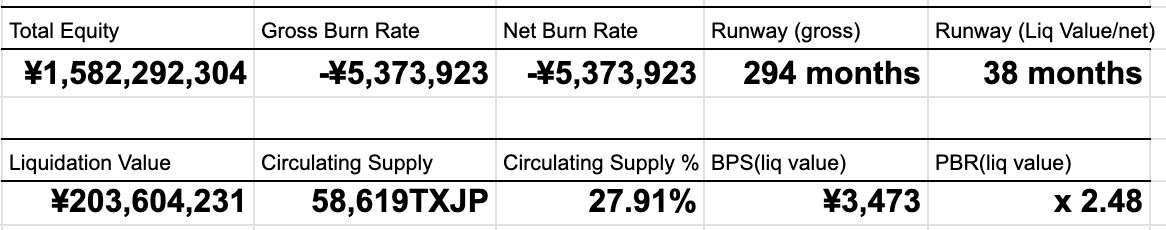 ・Runway:Total Equity / Net Burn Rate